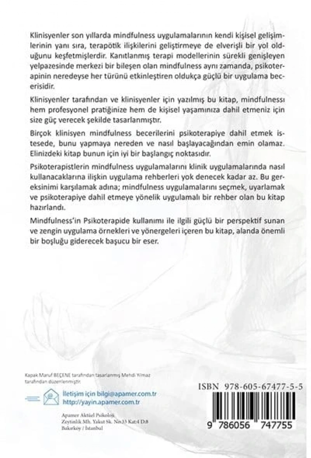 Mindfulness’in psikoterapide kullanımı ile ilgili güçlü bir perspektif sunan ve zengin uygulama örnekleri ve yönergeleri içeren bu kitap, alanda önemli bir boşluğu giderecek başucu bir eser.