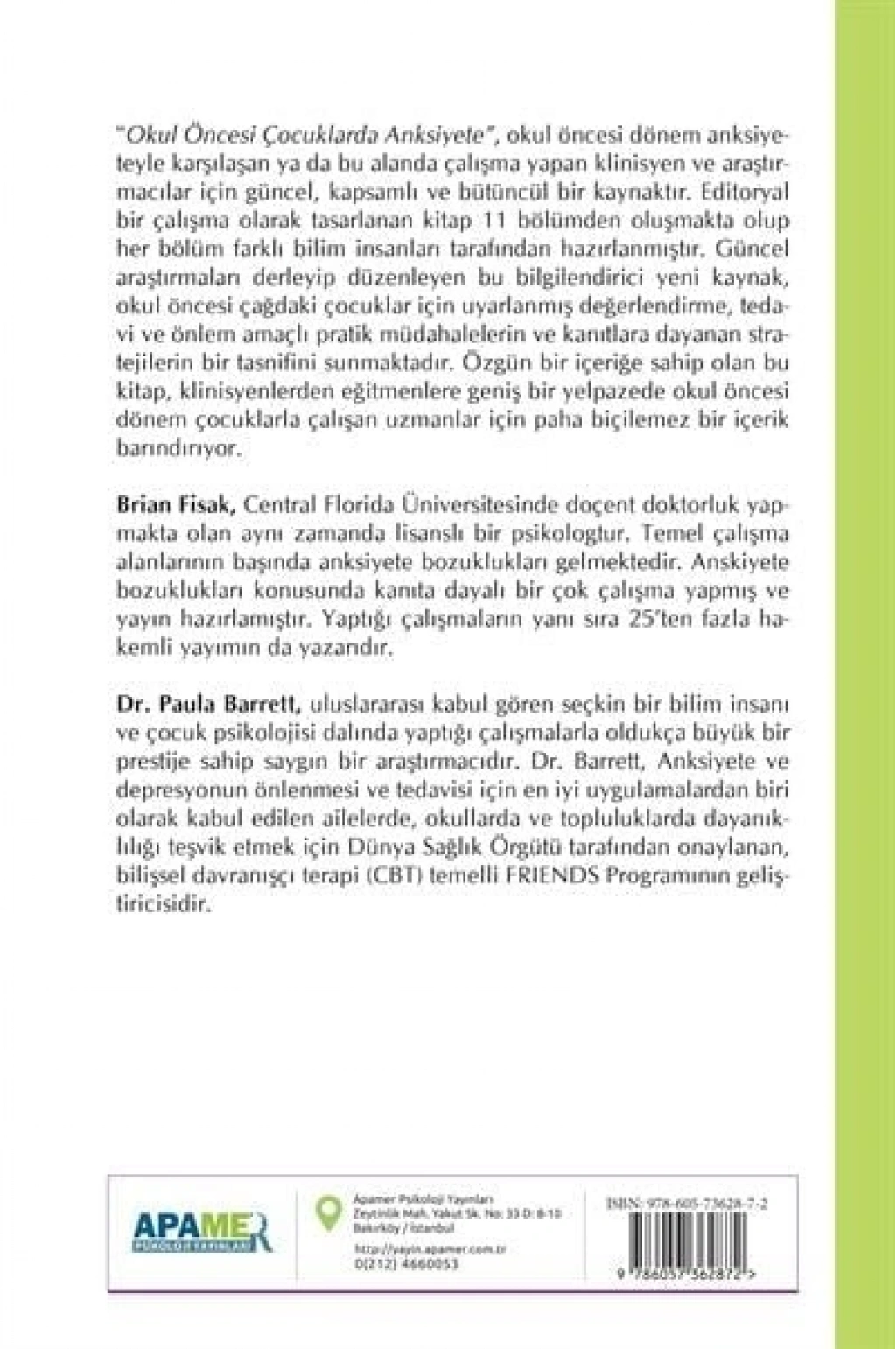 Dr. Paula Barrett, uluslararası kabul gören seçkin bir bilim insanı ve çocuk psikolojisi dalında yaptığı çalışmalarla oldukça büyük bir prestije sahip saygın bir araştırmacıdır. Dr. Barrett, Anksiyete ve depresyonun önlenmesi ve tedavisi için en iyi uygulamalardan biri olarak kabul edilen ailelerde, okullarda ve topluluklarda dayanıklılığı teşvik etmek için Dünya Sağlık Örgütü tarafından onaylanan, bilişsel davranışçı terapi (CBT) temelli FRIENDS Programının geliştiricisidir.